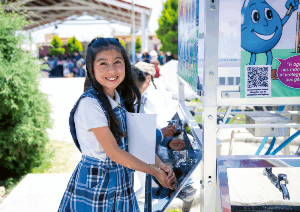 Ein Schüler einer Grundschule in Jilotepec versorgt sich mit aufbereitetem Trinkwasser.